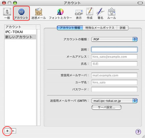 (例:mail.example.jp) を選択 または[ サーバを追加 ]から[ 送信用メールサーバ ]に入力する ![]() |