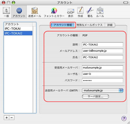 | メールアドレス | ユーザ名@ドメイン名 (例:user-a@example.jp) |