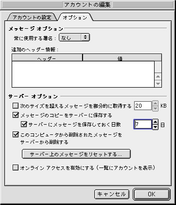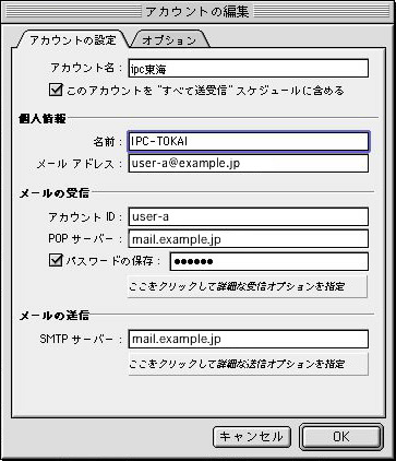 [ アカウントの設定 ]が以下のように設定されていることを確認してください。