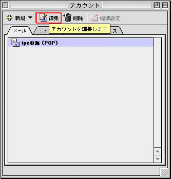 [ メール ]タブから確認したい設定名をクリックし、[ 編集 ]ボタンを押します。