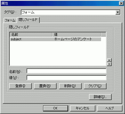 上のように隠し(hidden)フィールドを入力します。