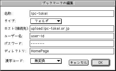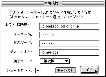 ※ここでショートカットを設定しておけば、毎回サーバ名やID等を入力し直す必要がありません。