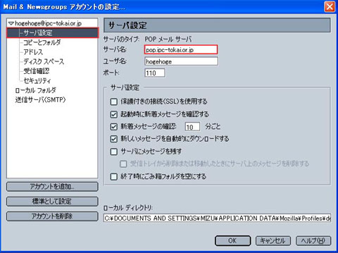 ホーム サポート電子メール:新メールアカウント設定 Netscape Navigator7でのメール設定