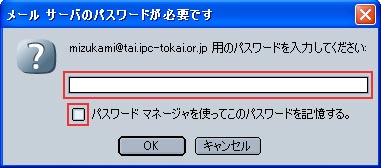 【名前とパスワードを使用する:】  : チェックマークを付けます。