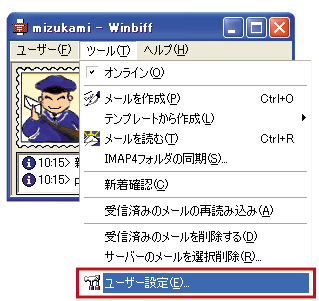 ■ 新メールアカウント設定 Winbiffでのメール設定