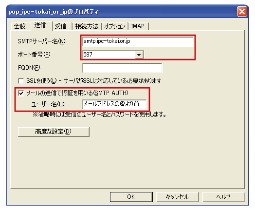 【smtpサーバー名(N)】 : smtp.ipc-tokai.or.jp