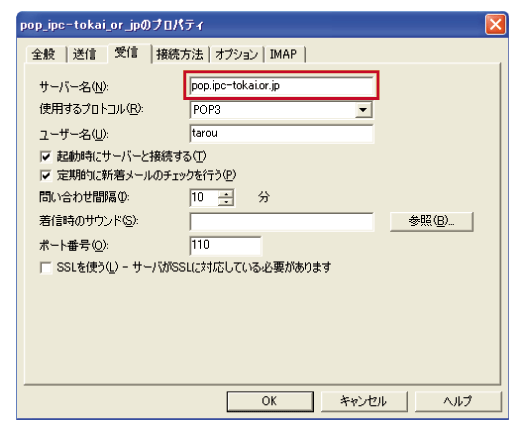 【サーバー名(N)】 : pop.ipc-tokai.or.jp