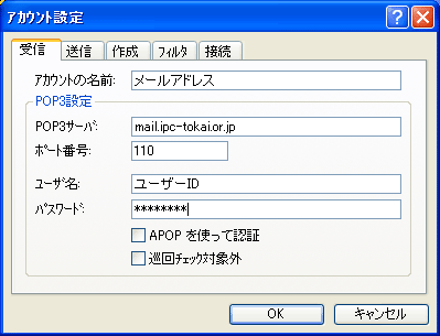 アカウントの名前:電子メールアドレスを入力(任意に設定できます)
