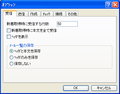 新着取得時に受信する行数:メール読み込みで何行取得するかを設定できます。
