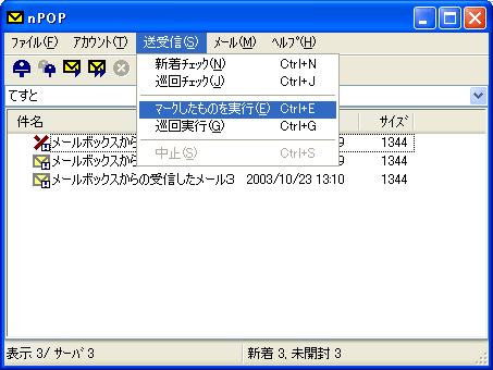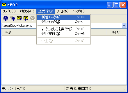 送受信_(S) → 新着チェック(N) を選択を選択します。