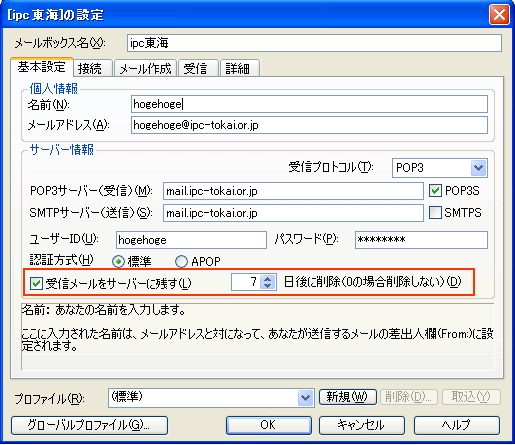 Becky! - メール受信時に自動的にサーバから削除